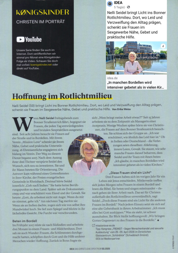 Hier erzählt sie von unterschiedlichen Begegnungen mit Prostituierten und woraus sie selbst ihre Kraft für diese emotional schwere Arbeit schöpft.